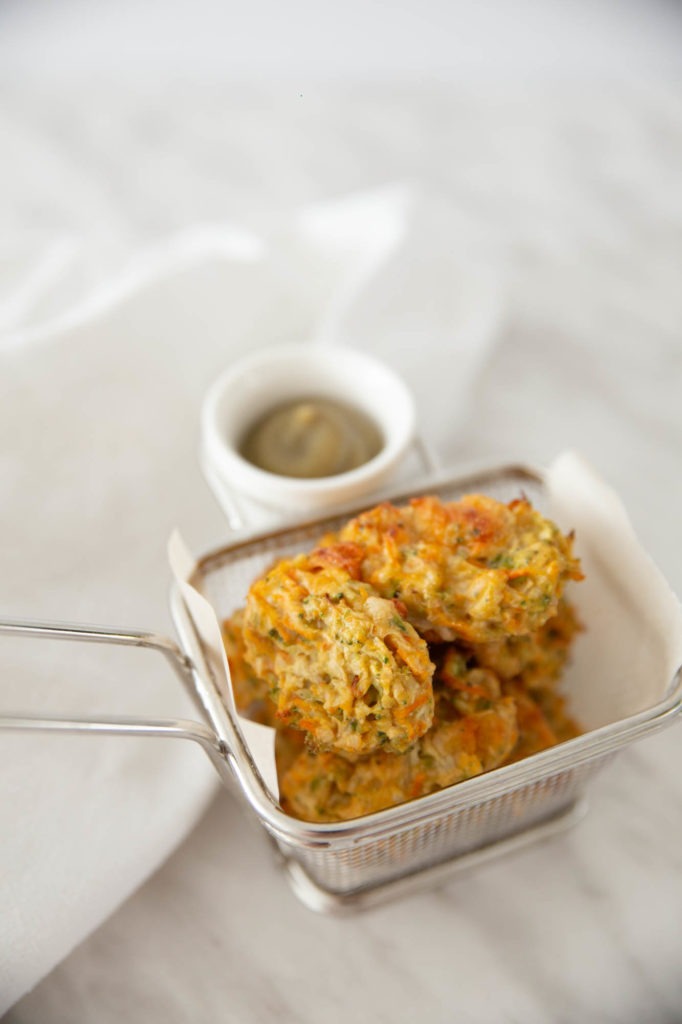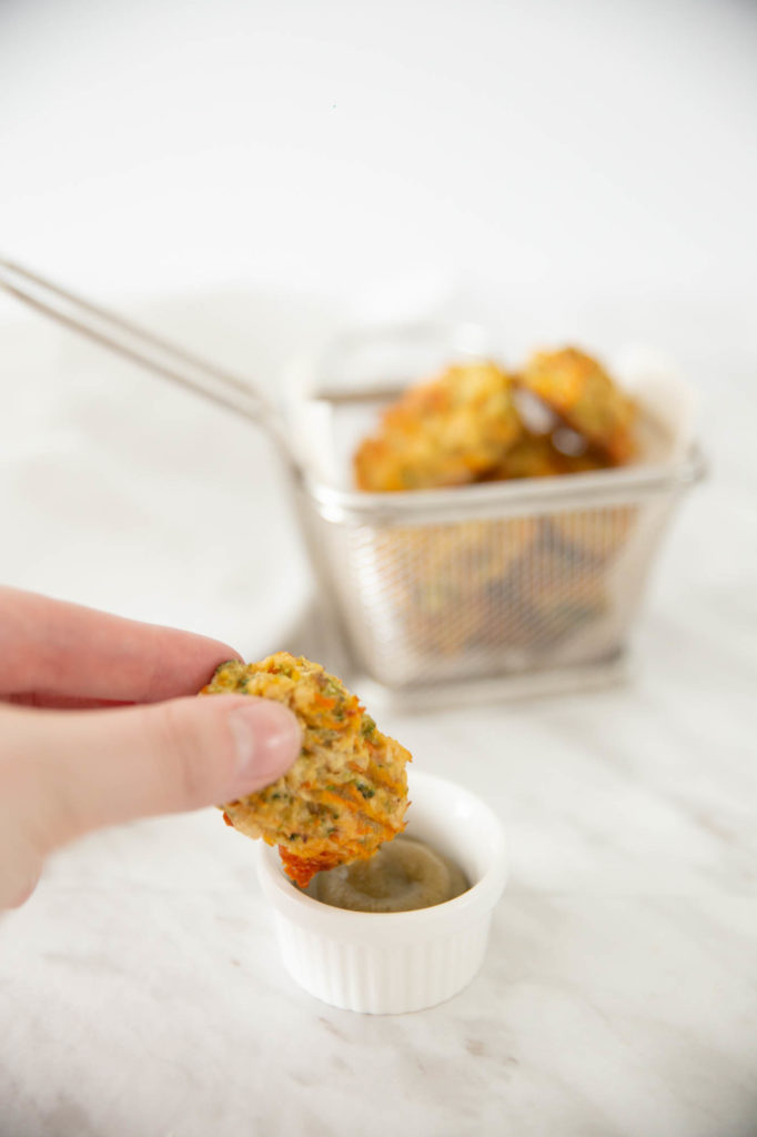 Tater tots, but make them healthy. Perfect for our tiny humans because these tots offer lots of veggies, protein, and fat. Make a double batch and freeze them for easy snacks!