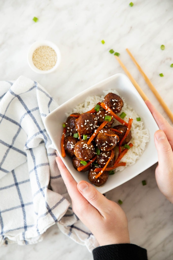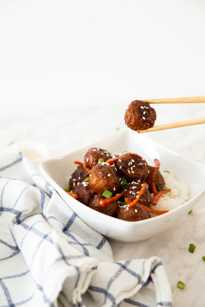 Although I am not vegan/vegetarian, I do opt for plant based options often. My honest review of these plant balls is that they were a great replacement for meatballs in this asian inspired dish that I created. The appearance, taste, and texture was similar to a meatball and overall we really enjoyed them. Want to try them out? Here’s the recipe: