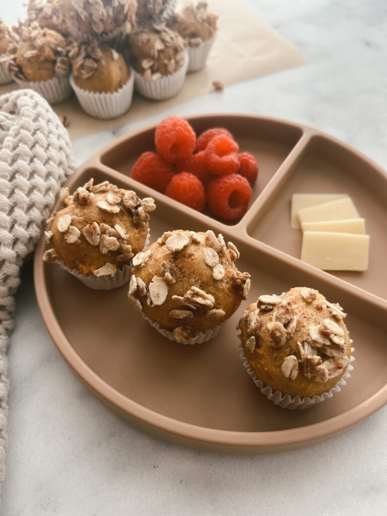 Homemade little bites, but make it pumpkin spice with a tasty crumble on top. Made with no unnecessary additives or ingredients, and a protein boost with Greek yogurt, these are sure to be the perfect addition to breakfast or snack for your little one! Bonus: they come together in 20 minutes and they’re great for tiny hands. (Make these at the start of the week, and freeze half for convenient snacks or lunchbox options).