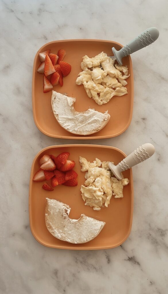 Our local bakery just recently started selling bagels and my pregnant mind could not stop thinking about them this week, so I had to grab some. For breakfast a few days, the boys had half a bagel with organic cream cheese.
