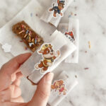 Optional: I wrap mine in parchment paper and add a little sticker for fun, I have found that only certain stickers will actually stay on the parchment paper, if yours don’t try using foil instead!
